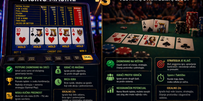 Na prvi pogled, video poker i pravi poker deluju veoma slično. Oba koriste iste karte, iste kombinacije i sličnu terminologiju. Međutim, razlika između video poker vs pravi poker je fundamentalna.